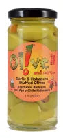 Set your senses on fire with our tasty giant green olives, double stuffed to perfection with a crunchy clove of garlic and a slice of hot and spicy Habanero pepper. An intense taste sensation!