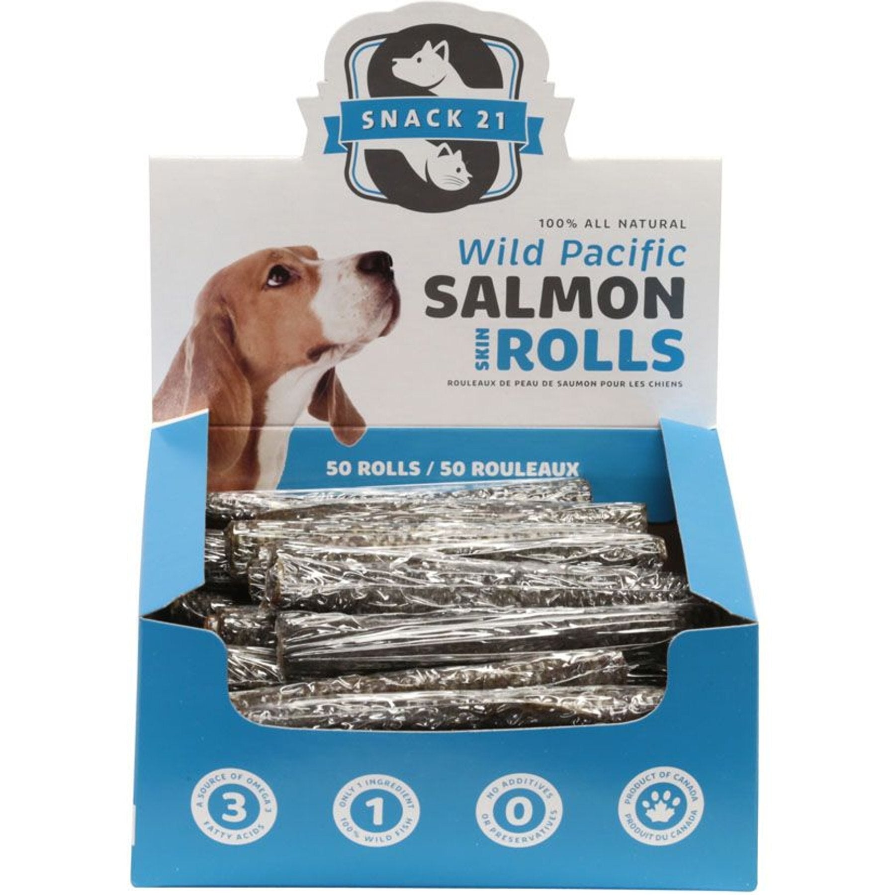 SNACK 21 PET TREATS - Dog Treats, Wild Pacific Salmon Skin Rolls 50ct