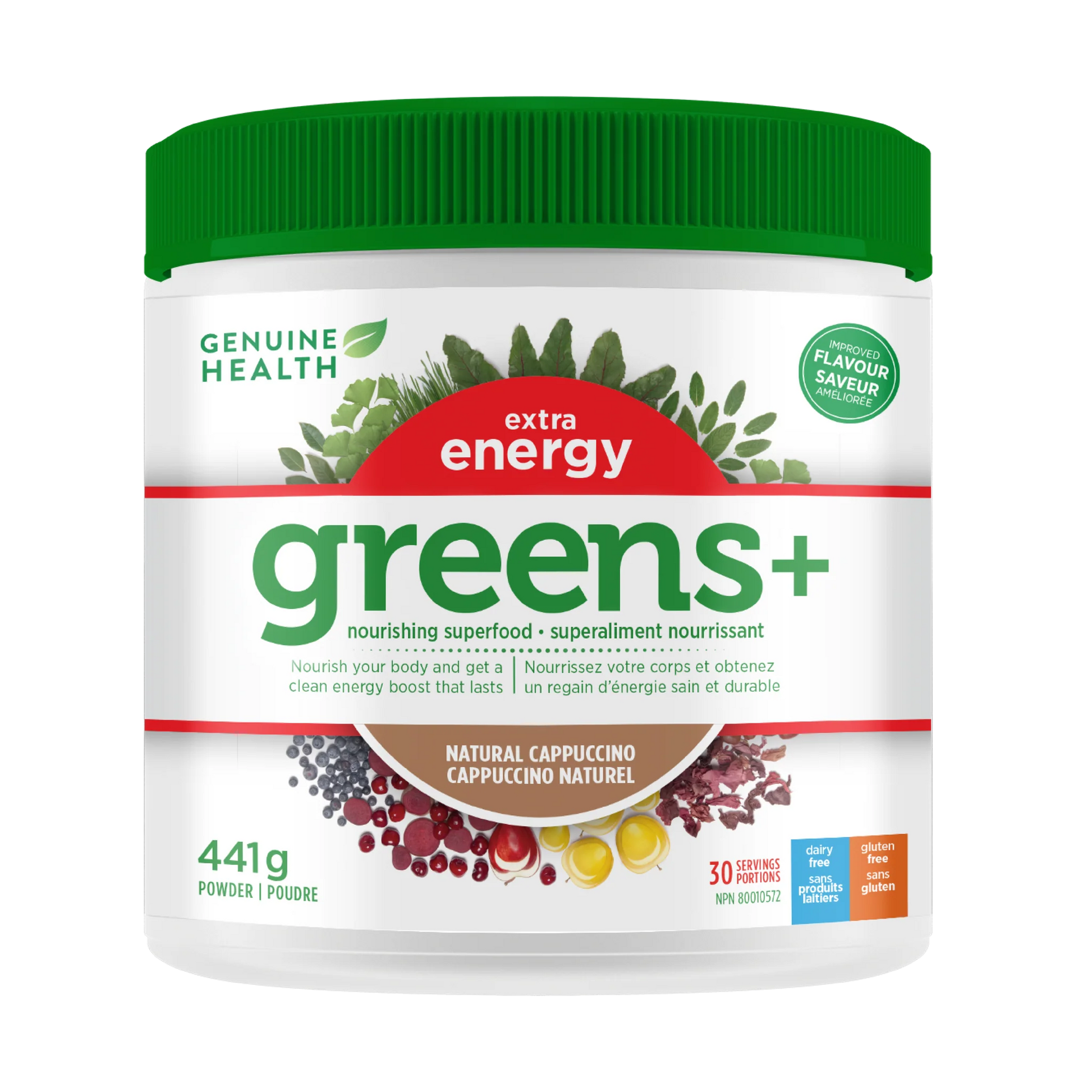 Genuin Health greens+ extra energy cappuccino, 30 servings