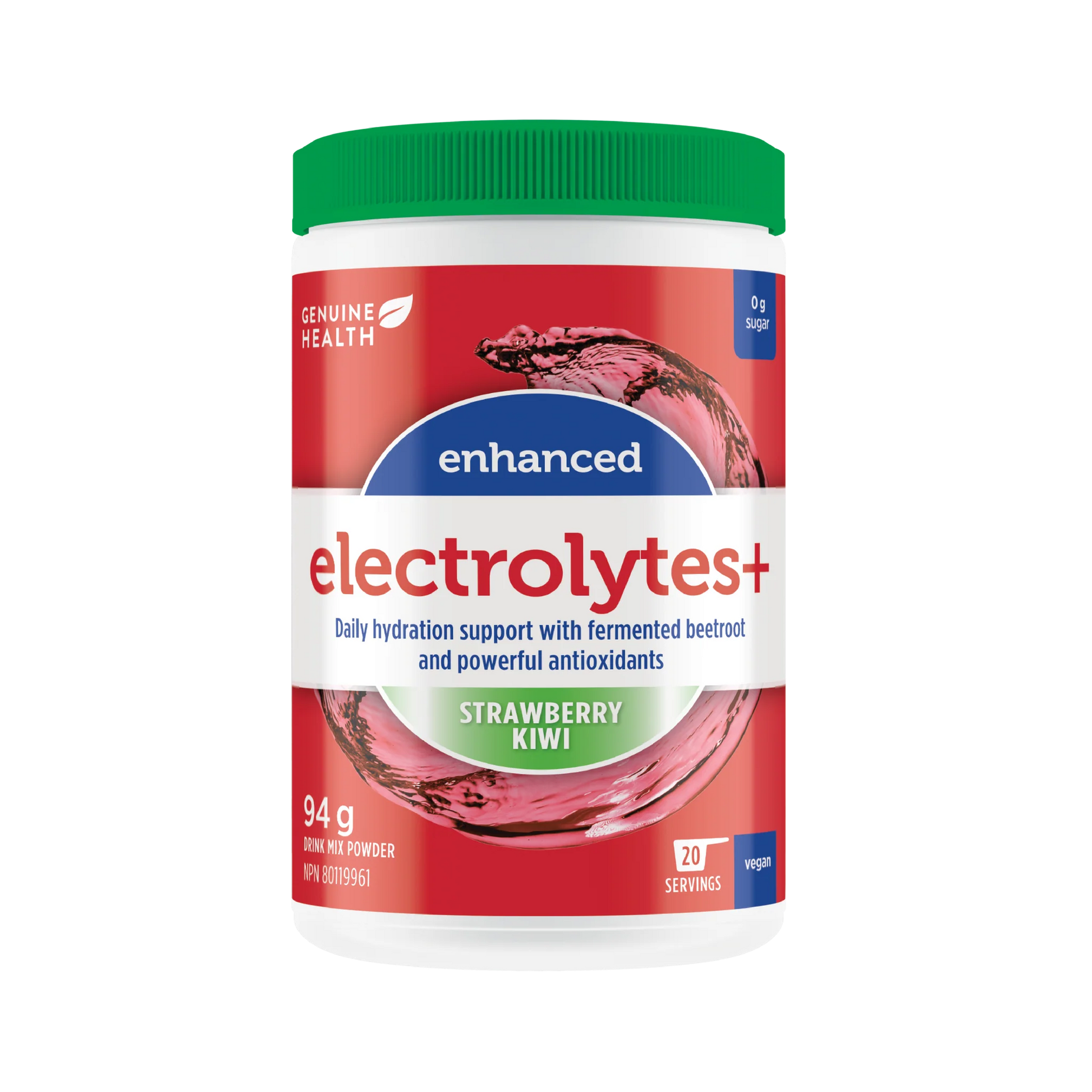Genuin Health enhanced electrolytes+ strawberry kiwi, 20 servings