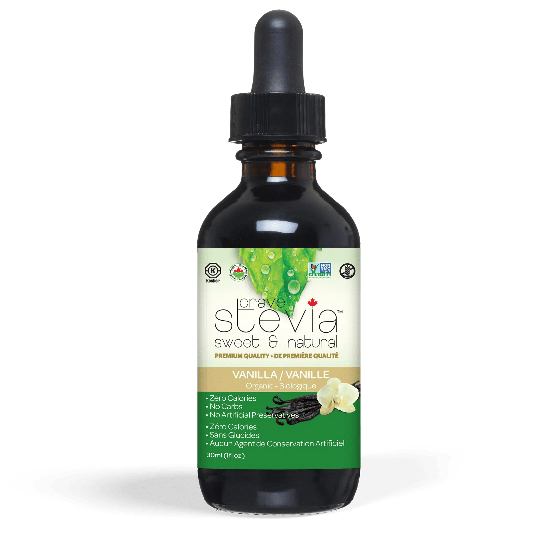 Crave Stevia Vanilla Liquid Drops bring the rich aroma of fresh Madagascar vanilla beans to any food or beverage. Just two drops transform ordinary food into a delicious treat from a French pastry shop.