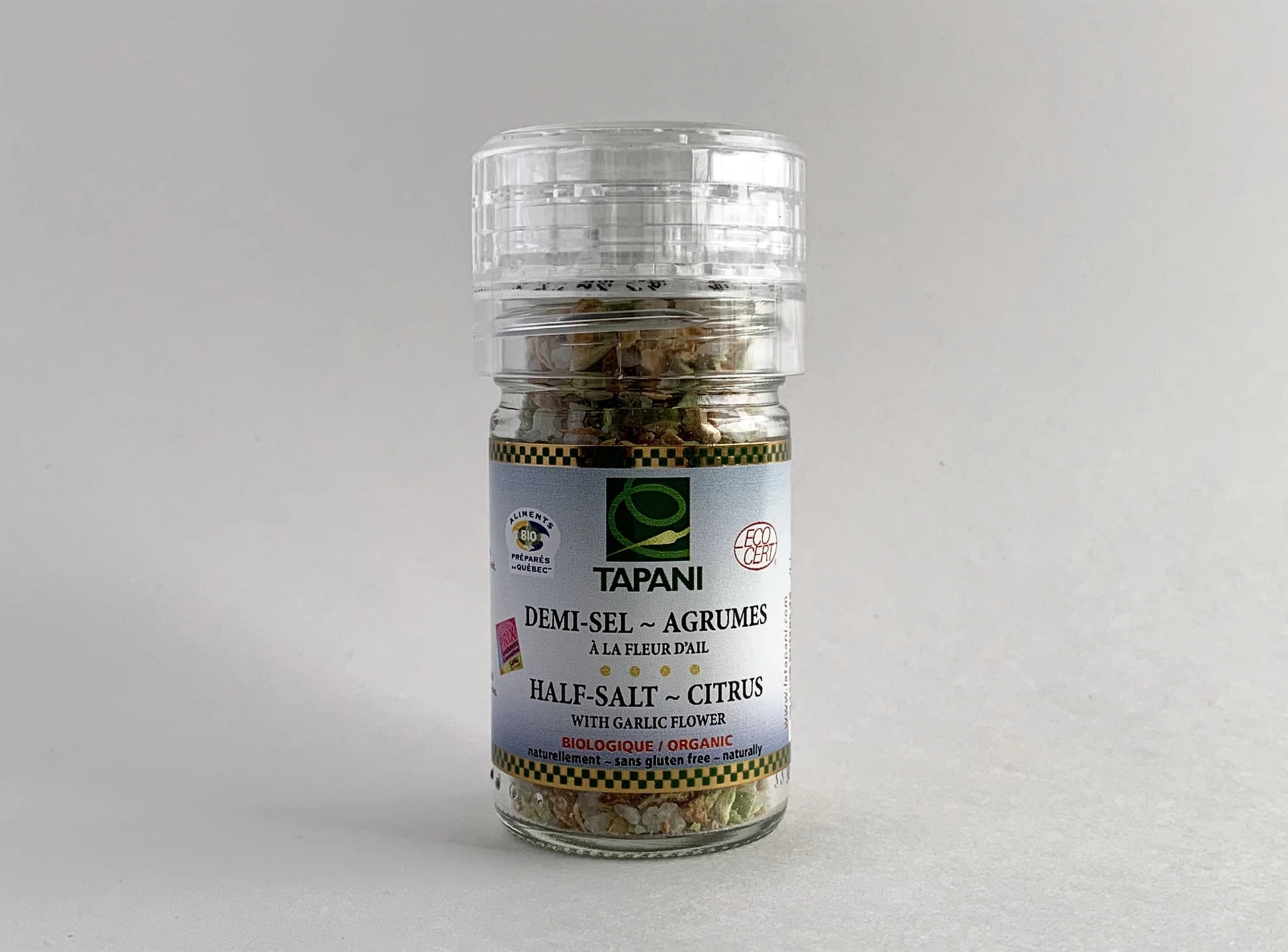 LA FINE FLEUR DE TAPANI - Half - salt, Citrus with garlic flower (salt grinder) 40g