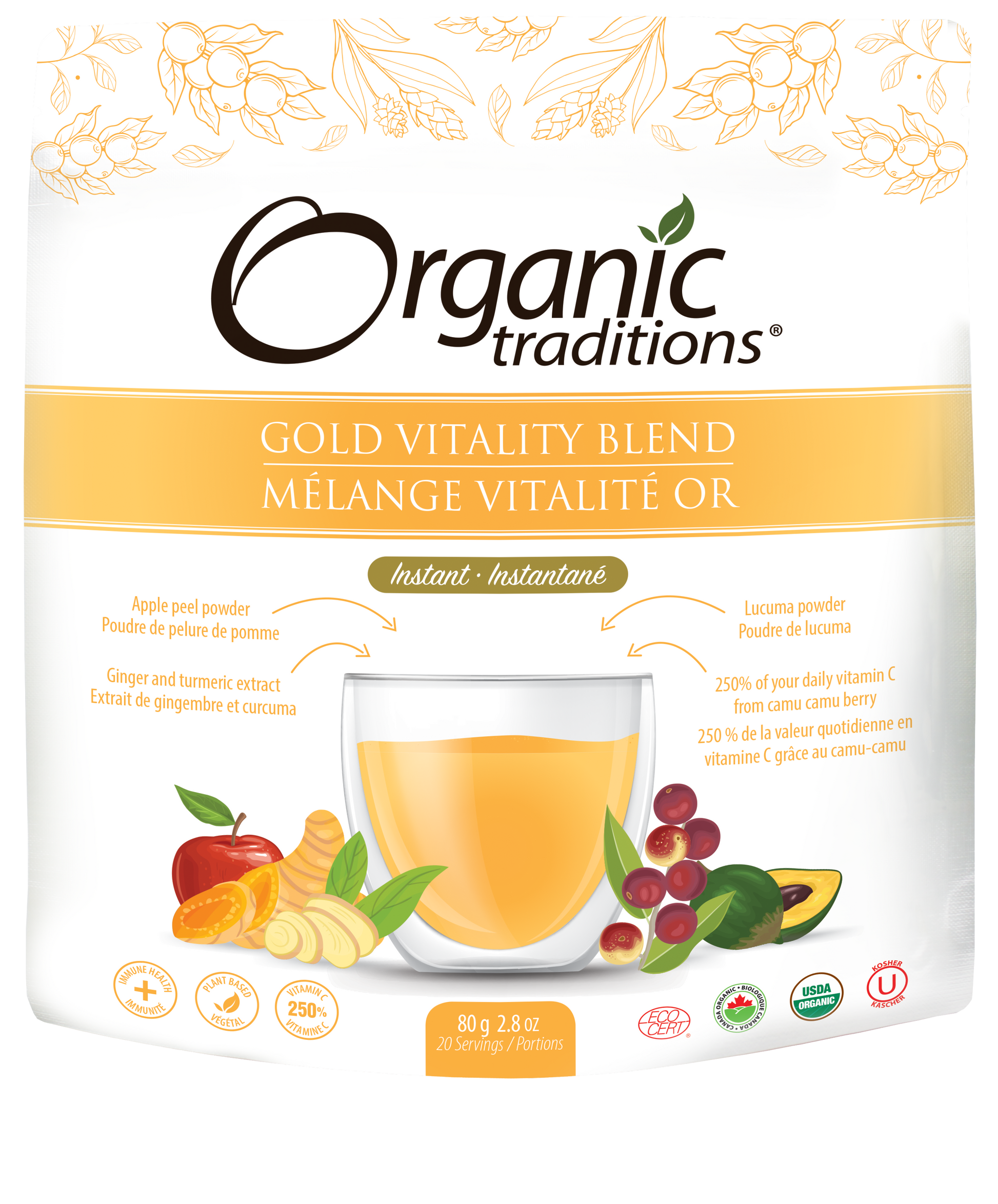 Our Vitality Blends are formulated to keep you feeling your best 365 days a year! We’ve combined organic camu camu berry powder and organic apple peel powder which are nature’s richest source of vitamin C and quercetin (a plant-based compound with antiviral properties), respectively. Together, Vitamin C and quercetin create holistic synergy to protect and defend you daily.