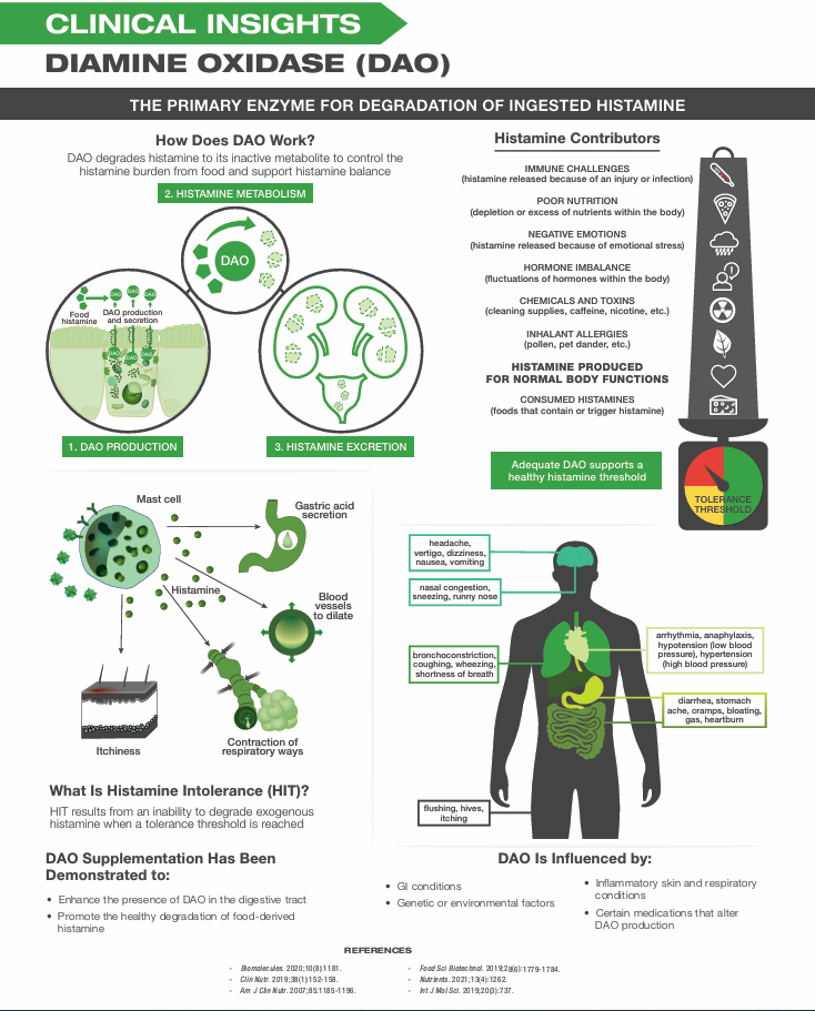 - Peut aider à réduire les symptômes de l'intolérance à l'histamine