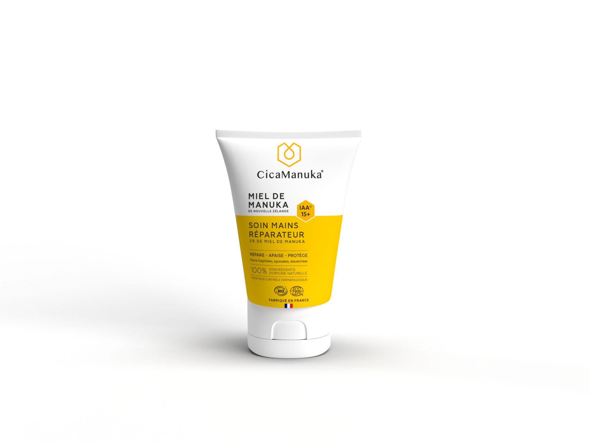 Enriched with IAA®15+ Manuka Honey, organic shea butter and organic olive oil, this expert dry skin treatment has been specially formulated to intensely moisturize the hands. It protects the weakened zones and promotes the cutaneous repair of the irritated skins.