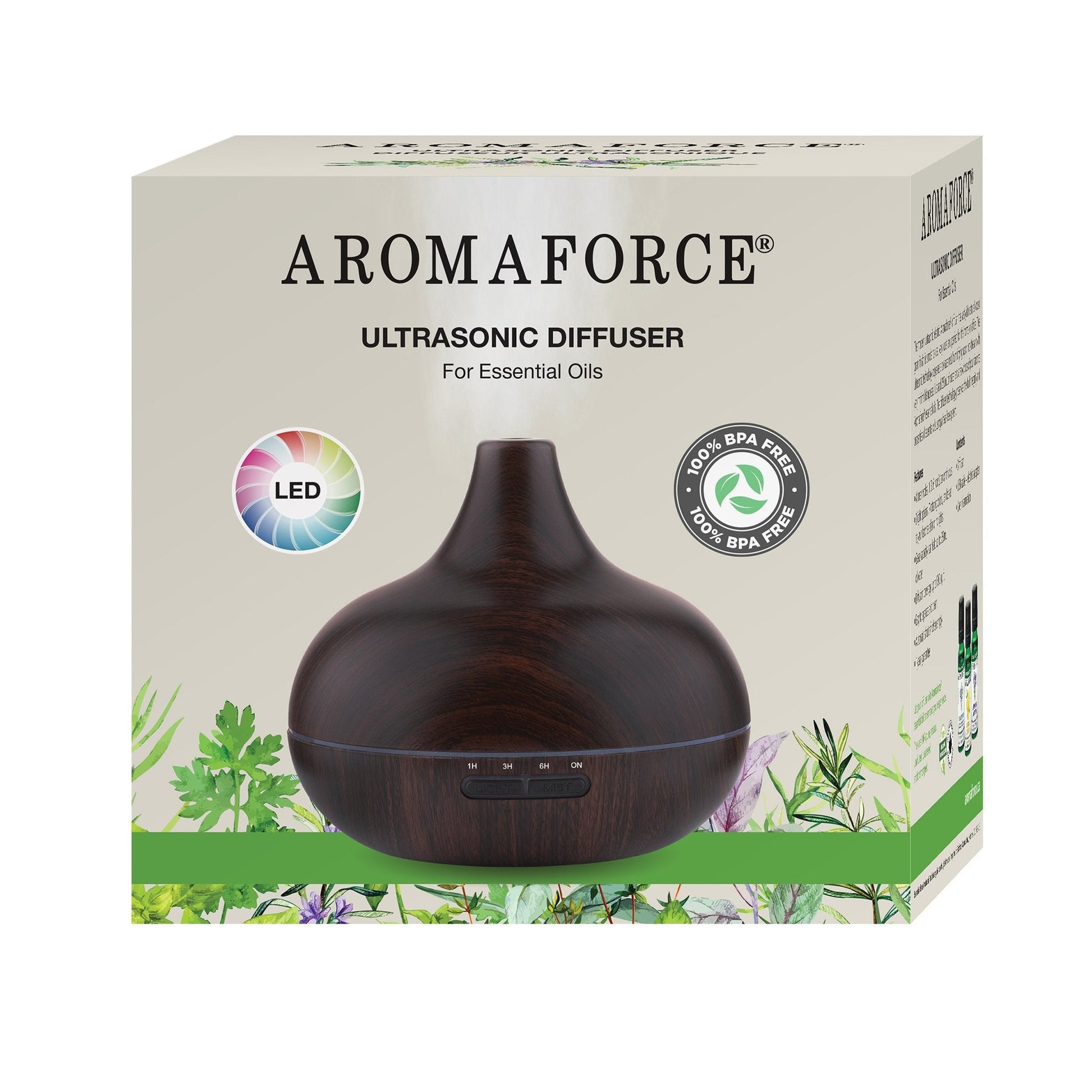 The modern ultrasonic electric Aromaforce® diffuser has a stylish natural wood grain finish, is simple to use, very quiet and perfect for the home or office.