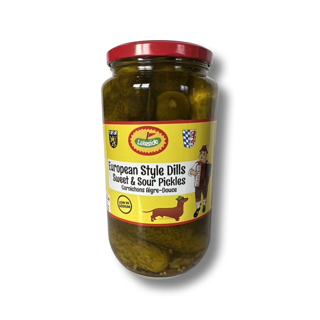 Sweet & Sour Dills – 12/1L. A pickle with many titles. Also known as Old Country Dills, Sweet & Sour, or German Dills, this pickle has full-bodied flavour that is indicative of Europe! Best when eaten alone to enjoy its character. Go crazy, put on your leder hosen, and dance!