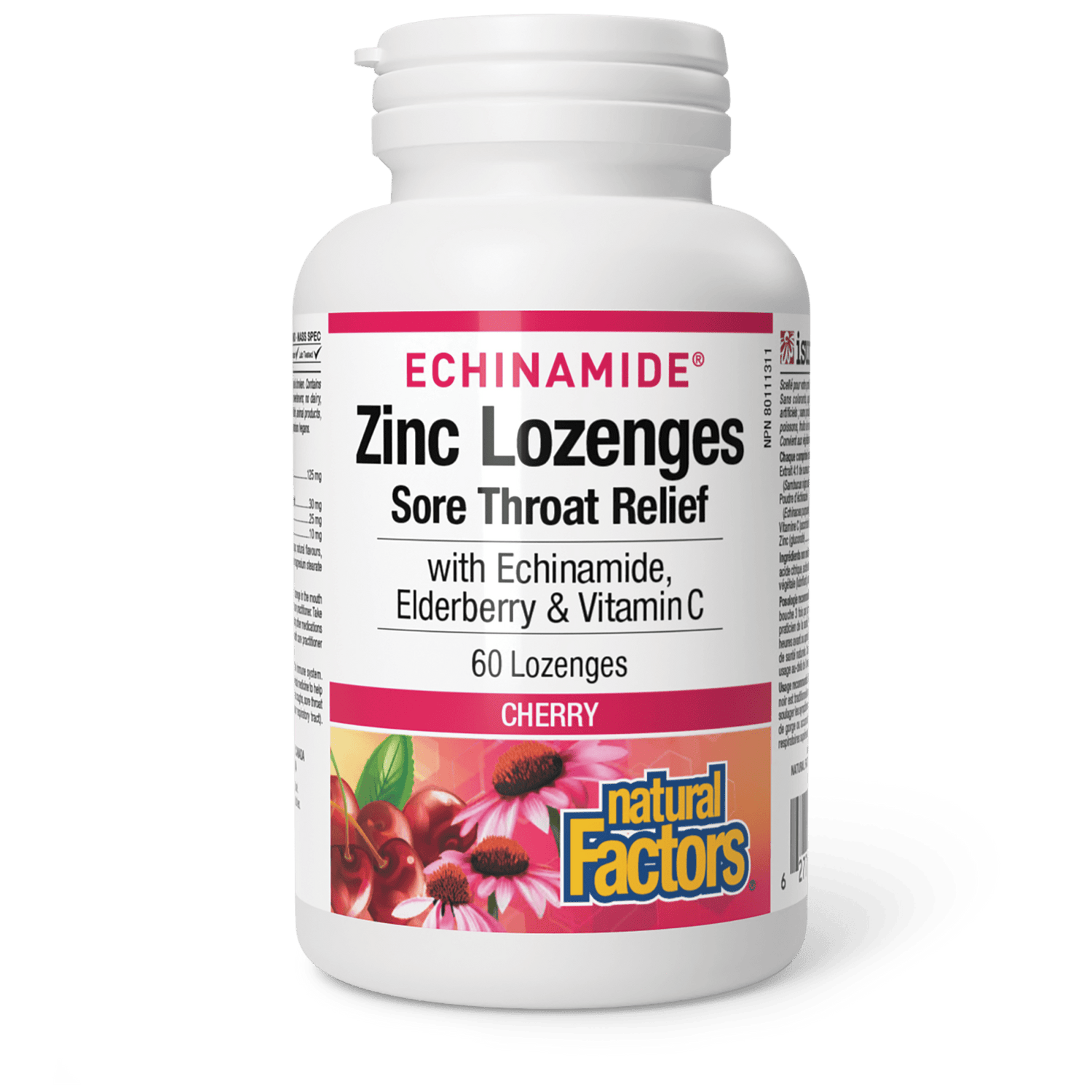 Natural Factors Zinc Lozenges with Echinamide, Elderberry & Vitamin C, Cherry 60loz
