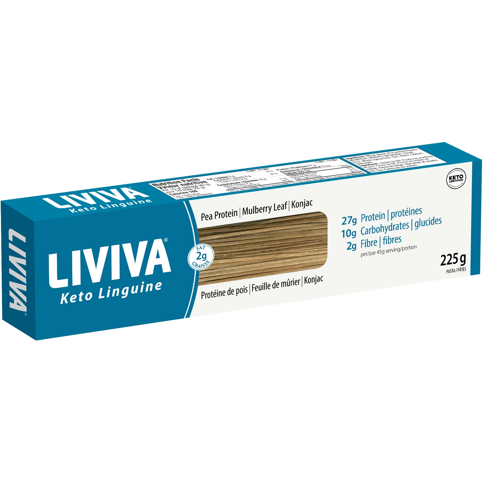 LIVIVA Low Carb High Protein Keto Linguine is a great alternative to traditional pasta. Packed with high-quality plant-based protein, high in fiber, and with no additives or preservatives, you can get healthy food that tastes so good. Made with Pea Protein, Mulberry Leaf and Konjac, it is simply delicious!