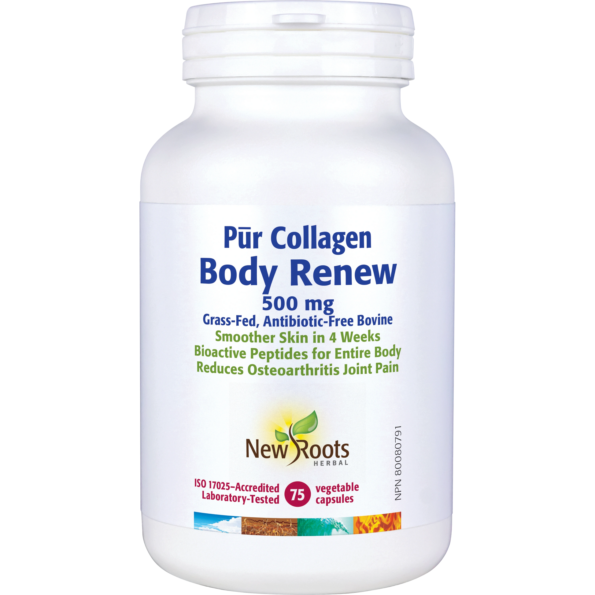 NEW ROOTS Pūr Collagen Body Renew · 500 mg · Grass-Fed, Antibiotic-Free Bovine 75 capsules