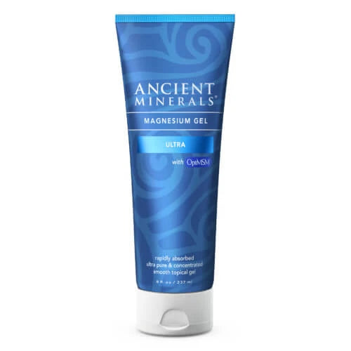 Ancient Minerals® Magnesium Gel Ultra utilizes premium distilled OptiMSM® and pure magnesium chloride in a professional strength magnesium gel formulation. Developed for a sustained release of magnesium chloride and aloe vera polysaccharides through the skin. Ancient Minerals Magnesium Gel Ultra stays hydrated when applied, and is designed to not fully absorb.