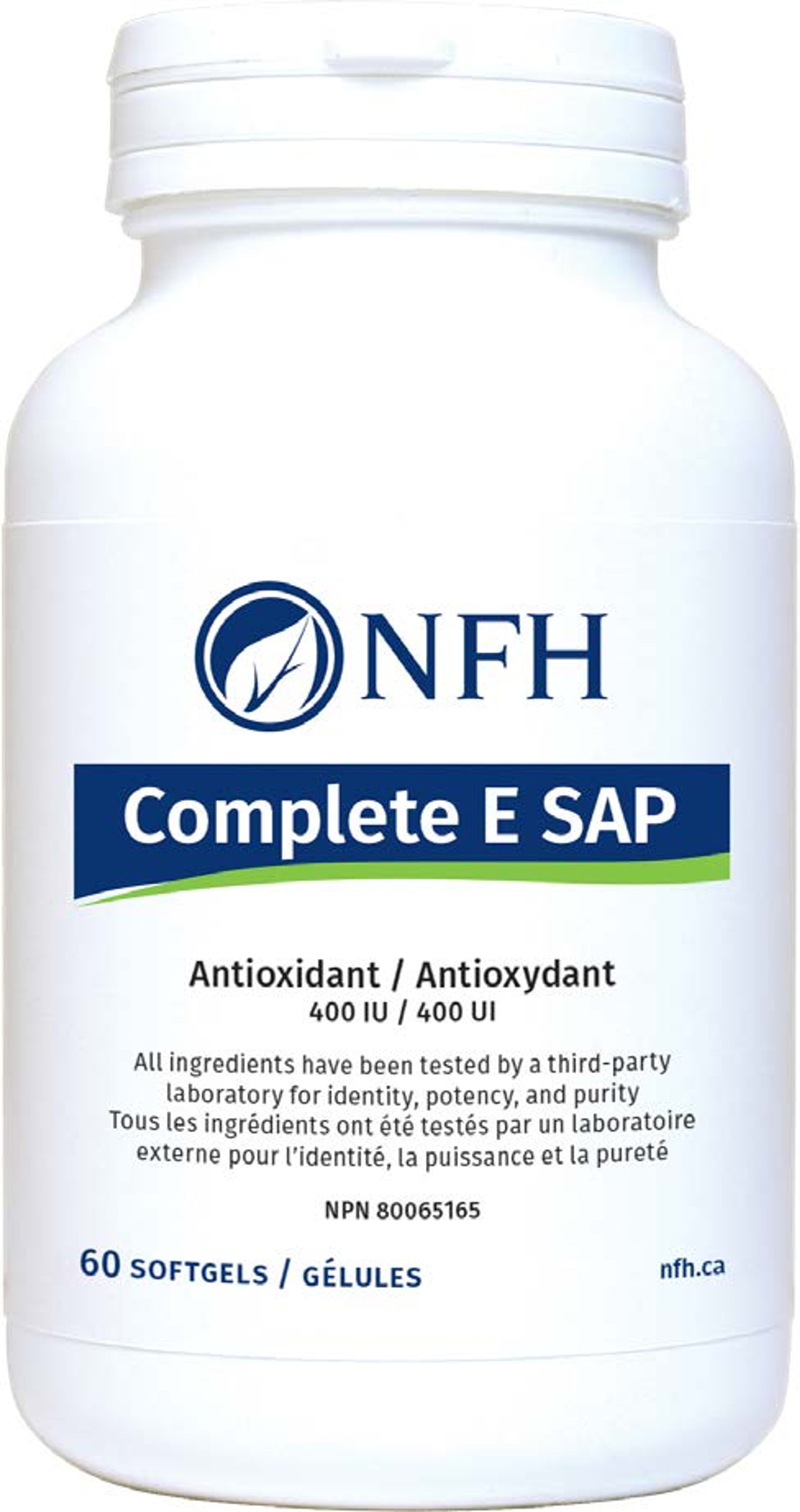 Vitamin E, in general, has been shown for its potential benefits for cardiovascular health and its role in the development of different types of cancer. Vitamin E’s ability to inhibit protein kinase C protects against inflammation, lipid buildup in the aorta, diabetic vascular complications, and platelet aggregation. Tocotrienols are equally superior in their antioxidant capacity and have a strong neuroprotection capability. NFH Complete E SAP provides a high-quality synergisticcombination of mixed tocopherols and tocotrienols for optimal health.