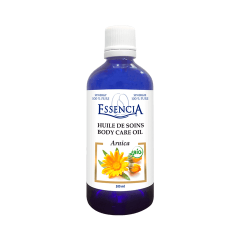 Arnica Organic Body Care oil revitalizes your skin and helps you relax! Arnica Organic Body Care oil has a unique composition rich in vitamin E, that offers many benefits to revive the skin such as softening, nourishing, toning and relieving dry skin. The Essencia Arnica Care Oil also provides a relaxing sensation when used for massages. It is particularly efficient when it comes to relieving stiffness from physical activity, driving or being in public transport over a long period of time. Our care oils are composed of oils or extracts from plants flowering tops, known for their health benefits and virtues. They are then combined with high quality organic Botanicals and Essential Oils, which are mechanically extracted and pressed without the use of any chemical solvents, additives or preservatives.