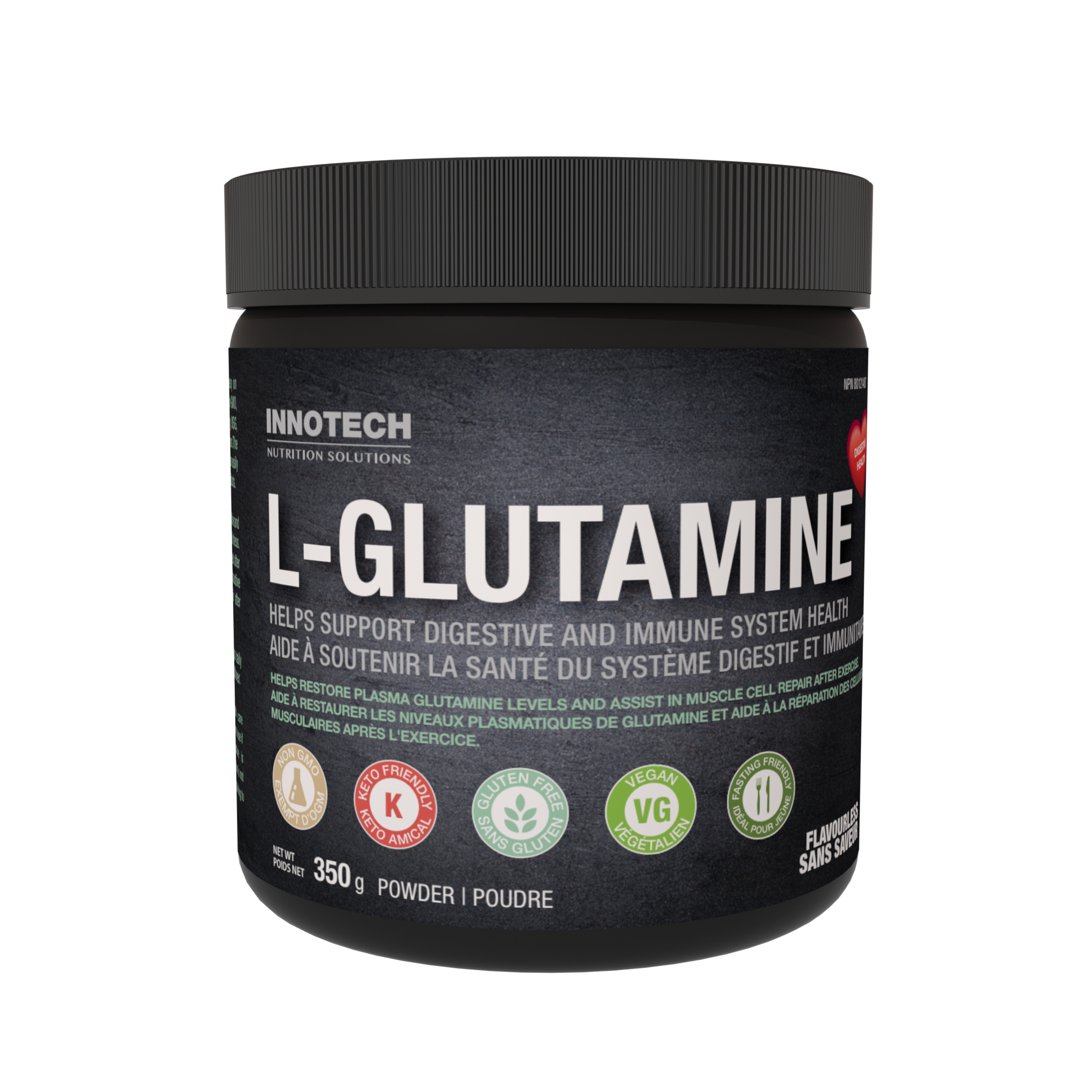 Innotech Nutrition’s pure L-Glutamine is easy on your stomach, fermented, Vegan-friendly, non-GMO, non-dairy and free of sugar, salt, gluten, dairy, MSG, artificial sweeteners, artificial flavours and colours. The only ingredient is pure L-Glutamine powder. Can easily be added to many other Innotech Nutrition healthy drink mixes to increase Glutamine content like CardioFlex Q10, Fasting Days, Immune Essentials, Fermented Organic Greens and Fermented Plant Protein products.